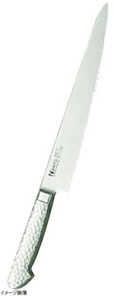 27cm 全長402mm 165g 背厚2.5mm材質:刀身 モリブデンバナジウム鋼、ハンドル 18-8ステンレス、フロスティー仕上刀身にモリブデンバナジウム鋼を使用しハイレベルでの技術を駆使した理想の庖丁です。耐蝕性、耐磨耗性、耐熱・耐寒性に優れ、切れ味の持続性など品質を徹底追求して、高度な機能を実現しました。ハンド...