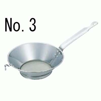 キッチンネット φ29cm 50メッシュ ボウルの上にキッチンネットを置いて、食材の水切りや油きり、裏ごし等にお使いいただけます。 また、揚げ物の油はねを防ぐのにも効果的です。29cmには、ハンドルの反対側にフックはついていません。 サイズ φ29.2cm 柄長さ:17.5cm 50メッシュ(裏ごし、細目) 約0.5mm格子 材質 18-...