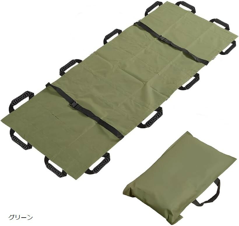 バリエーションコード : 2bupprpccy商品コード2buppo9gs4商品名折りたたみ 担架 ストレッチャー 簡易担架 緊急 非常用 コンパクト 軽量ブランドZERONOWAカラーグリーン折りたたみ式担架です。大人一人、100kgまで対応可能。持ち手は12か所、2人~4人で運ぶことができます。身体を留めるベルト付き。コンパクトに折りたた...