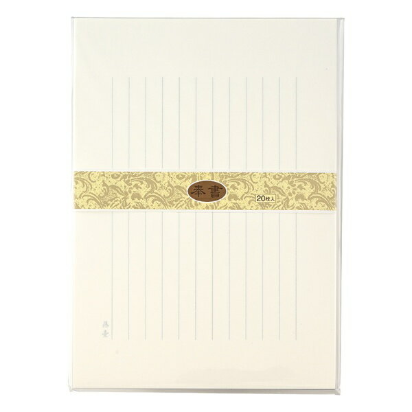きめ細かい奉書を使用した便箋です。何回でも開け閉めできるパックは保存に便利です。罫縦11行。サイズ:182×257mm。20枚入。