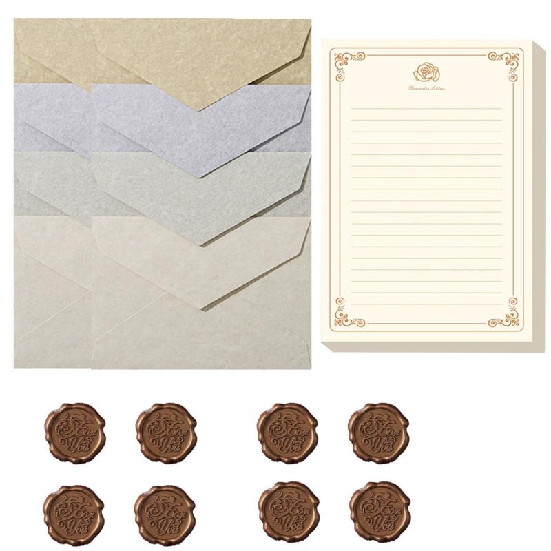 レターセット 手紙セット 封筒8枚 便箋24枚 封緘シール8枚 おしゃれな封筒 ...
