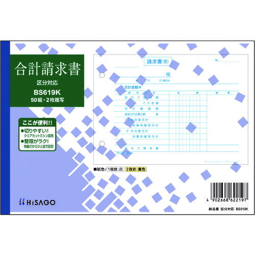 ヒサゴ HISAGO 合計請求書単独税率(BS619TS) 取り寄せ商品