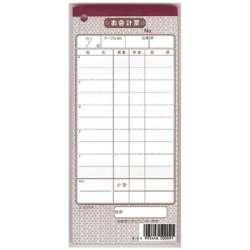 小計欄が付いています。サービス料や深夜料金、その他の料金を、後から追加できます。■ 基本仕様複写枚数単式サイズ(縦x横)190x84mm行数15ページ数100ミシン目なし通しNo.なしテーブルNo.あり名様・人様あり担当者・係ありおあいそ票なし品名入りなし紙色白刷色黒