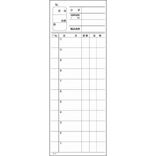 型番チ-18AYサイズ(縦x横)351x61mm綴り・バラバラ綴り数11枚枚数100枚紙色-刷色-ミシン目あり穴なし