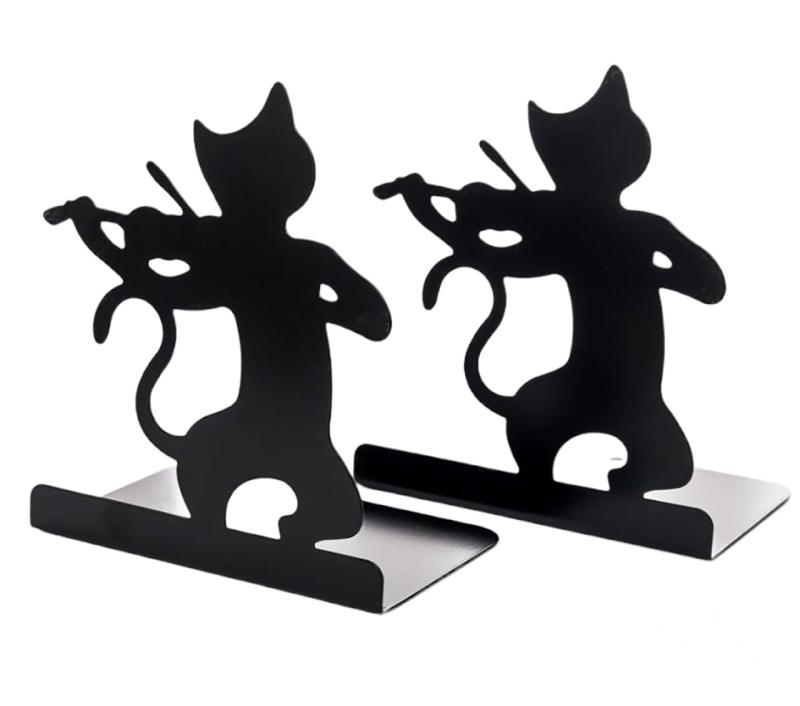 umely ブックスタンド 本 ブックエンド 本立て デスク収納 ブックホルダー 仕切りスタンド 黒 ブラック 猫 2個セット