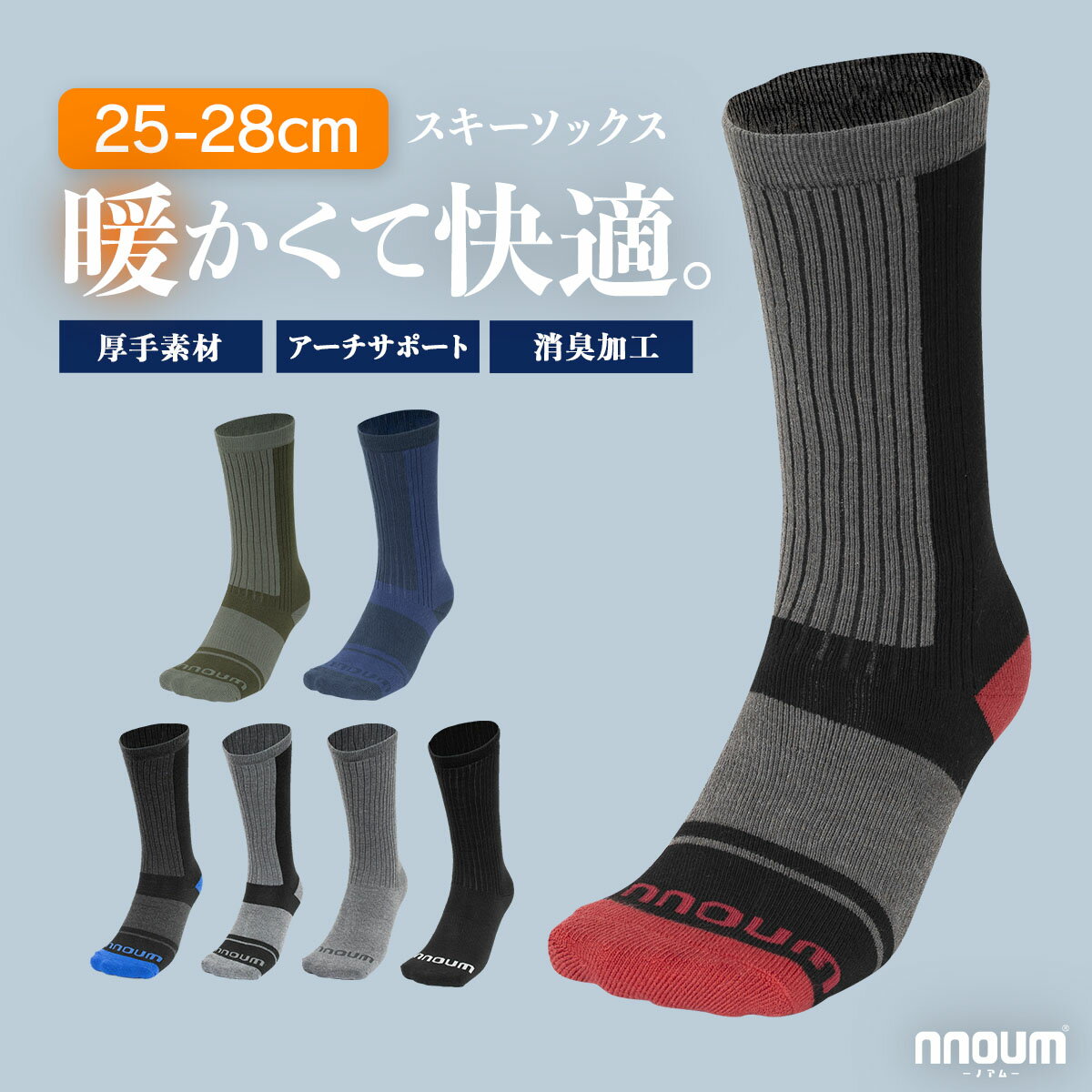 スキー スノーボート ソックス メンズ 靴下 防寒 NNOUM ノアム 25-28 クッシ...