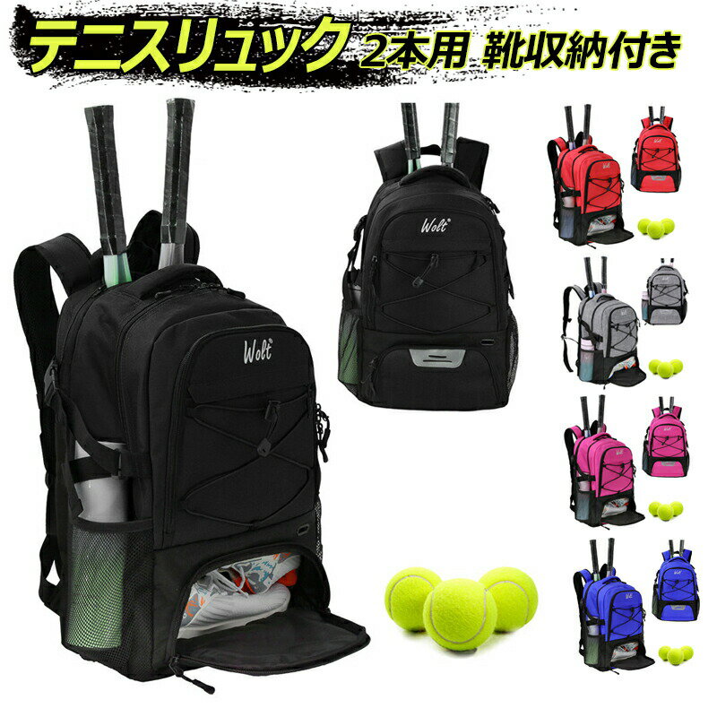 テニスバッグ 2本用 テニスラケットバッグ テニスラケットリュック バドミン...