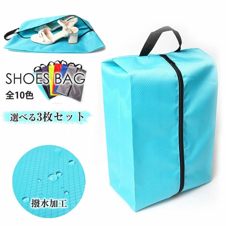 3枚セット シューズバッグ 靴入れ袋 ファスナー 撥水 シューズ入れ 靴用袋 ...