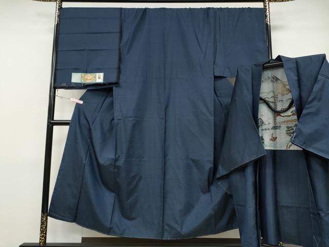 平和屋着物●男性 紬 アンサンブル 色無地 藍鼠色 キングサイズ 正絹 ...