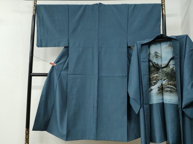 平和屋着物●男性 紬 アンサンブル 色無地 紺地 正絹 逸品 未使用 CA...
