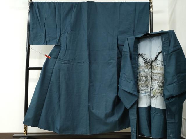 平和屋着物●男性 六條 ゆきやま紬 アンサンブル 濃鉄御納戸色 証紙付き...