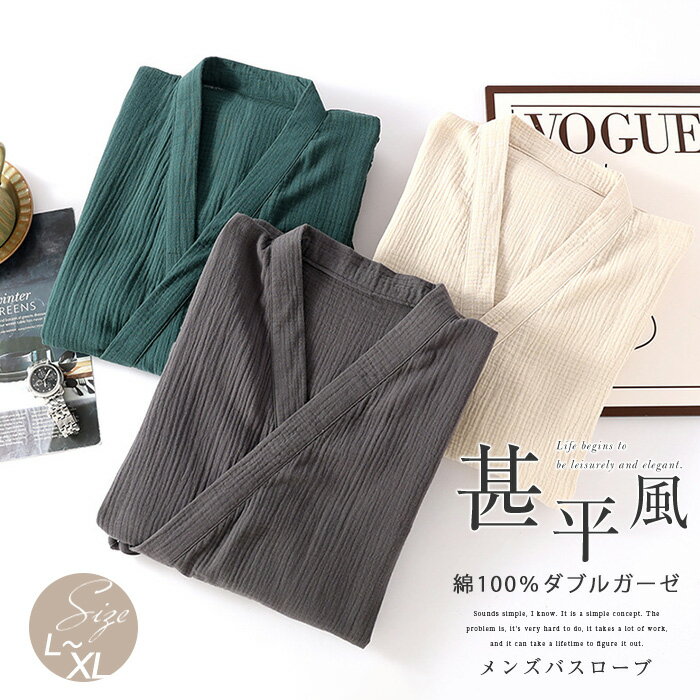 バスローブ 綿 100% コットン メンズ ガウン ルームウェア パジャマ 和風パ...