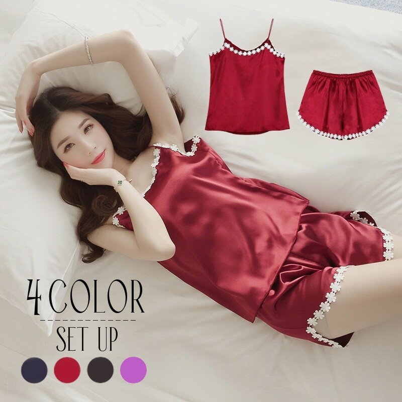深Vネック&バックコンシャスなセクシーデザイン♪ キャミ+ショーパンのレディース用ルームウェア上下セットです。 胸・背中まわり・裾のレース飾りがお洒落ポイント☆ 【カラーについて】 生産ロットにより柄の出方や色の濃淡が異なる場合がございます。 お使いのモニターや撮影時の光の加減などにより 画像と実際の商品...