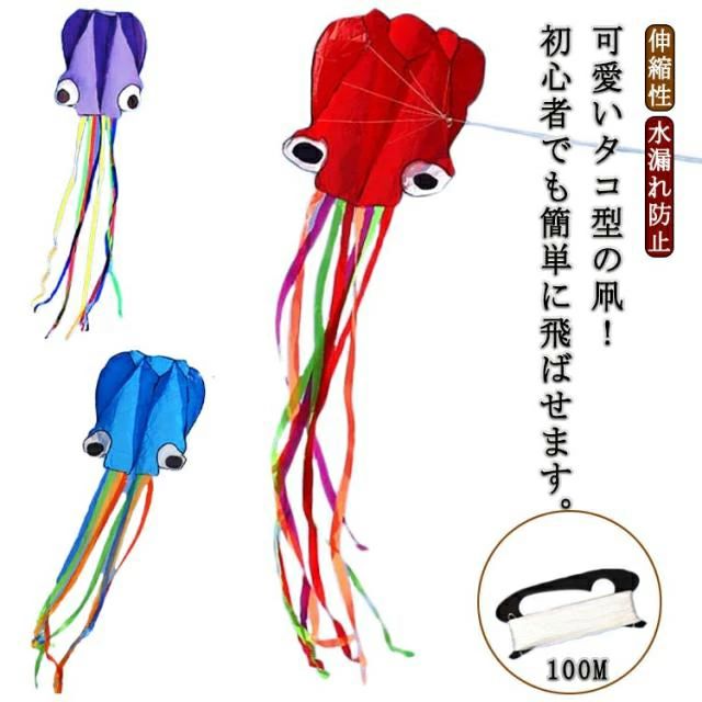 初心者でも簡単に飛ばせる可愛いタコ形のカイト。骨組みがないため、折りたたんでカバンに入れておけて、公園などに遊びに行く時とっても便利。カラフルで可愛いデザイン、子供のプレゼントとして最適。ピクニック、キャンプなどで外遊ぶ時、お子様から大人までお楽しみいただけます。 サイズ100m凧糸サイズについての説...