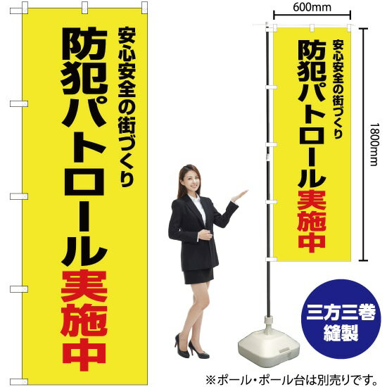 防犯パトロール実施中(黄) のぼり OK-357(受注生産品・キャンセル不可)