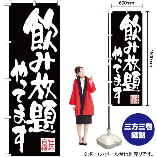 飲み放題やってます (黒) のぼり EN-48(受注生産品・キャンセル不可)