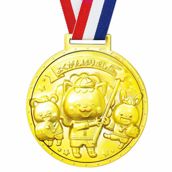 ゴールドで立体感のある3Dメダル!ゴールドで立体感のある3Dメダルです。リボンにはマジックテープが付いており、もしもの時にも首がしまらず安全に使用できる安心設計。運動会やスポーツ大会などのプレゼントや記念品におすすめです。・商品サイズ : 約φ80×厚み約15mm・リボンの長さ : 840mm・セット内容 : 本体のみ・重...