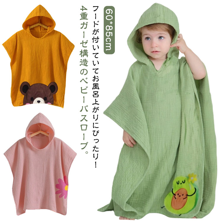 フードが付いていてお風呂上がりにぴったり!4重ガーゼ構造のベビーバスローブ。プールタオルとしても便利です。ポンチョ型にしておけば、お風呂上りそのままスポン!とかぶせることも可能です!【構造】素材はガーゼが4層で柔らかい素材の為、お子さんの体を優しく包みます。もちろん吸水性も抜群です! サイズ 60*85cm...
