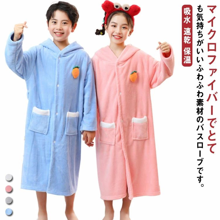 \超目玉商品/キッズ バスローブ パジャマ ナイトローブ 女の子 男の子 帽...