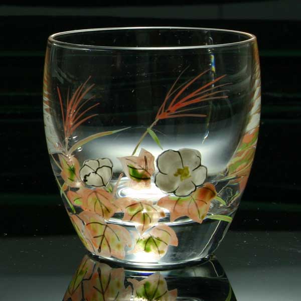 京焼き絵付け 冷酒グラス ギフト 十二ケ月花鳥図(秋草