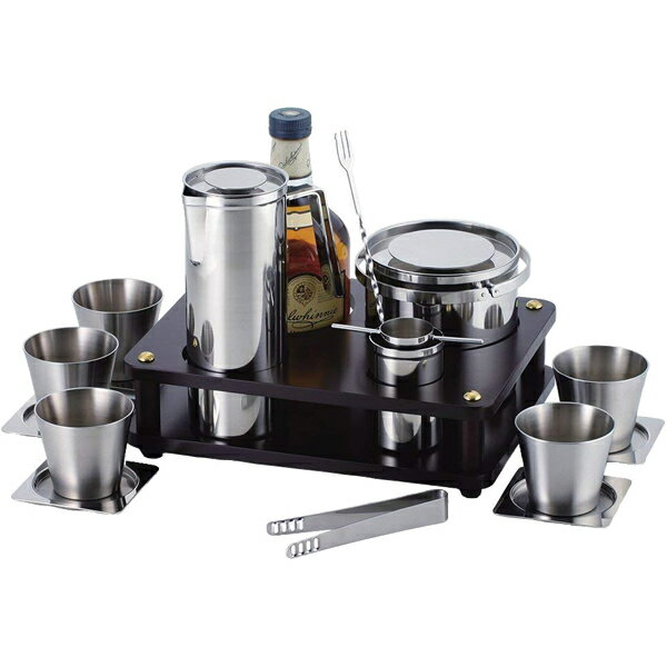 【セット内容】 アイスペール(約1300ml) ウォーターポット(約900ml) メジャーカップ(約30ml) スタンド バースプーン(順次、画像と異なるマドラースプーンに変わります) タンブラー(200ml)×5個 コースター×5枚 木台(約296×226×H82mm) 【商品詳細】 箱サイズ:約310×230×H250mm 材質:18-8ステンレス・MDF ■酒...