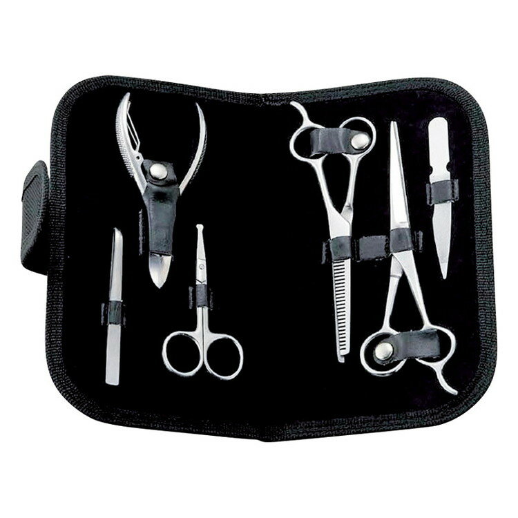 日常生活、旅行への携帯にも便利なデイリーセットです。ポーチ(24×12×4cm)・散髪ハサミ・スキバサミ・先丸鋏・毛抜き・つめヤスリ・ニッパー型つめ切り×各1ポーチ:ナイロン、散髪ハサミ・スキバサミ・先丸鋏・毛抜き:クロムメッキ刃物鋼、つめヤスリ:ステンレススチール、ニッパー型つめ切り:ステンレス刃物鋼【代引き...