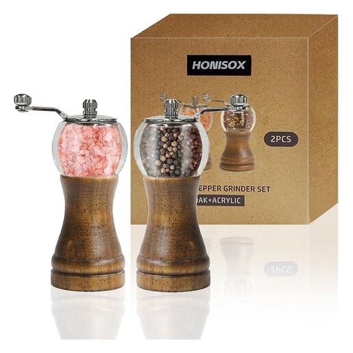 ウッドソルトグラインダー、ペッパー&ソルトグラインダーセット、ハンドル付...