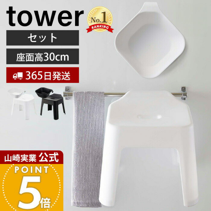 [ 洗いやすいマグネット風呂イス タワー SH32 選べる桶セット ]山崎実業 t...