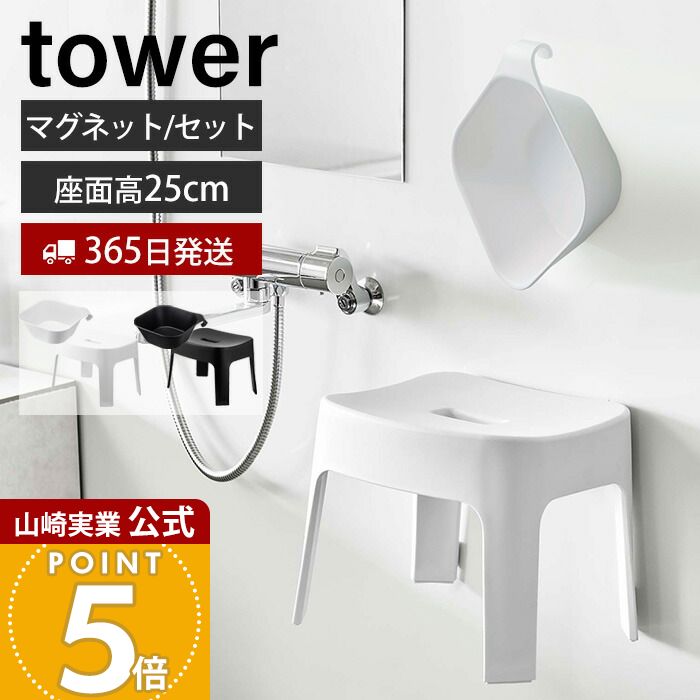 [ マグネット 風呂イス タワー SH25 &引っ掛け湯おけセット ] 山崎実業 公...
