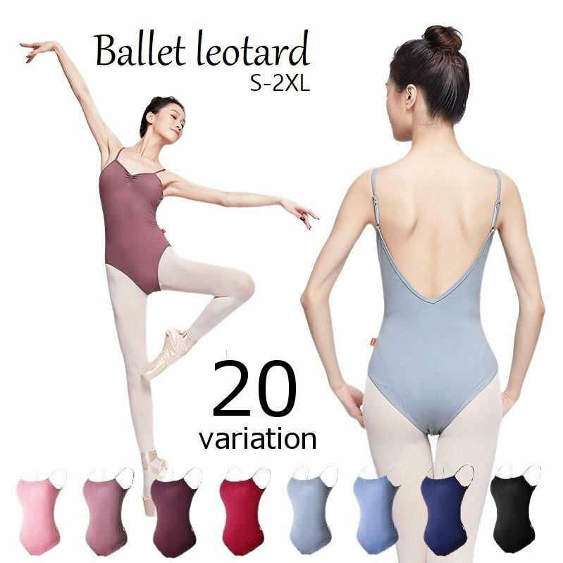 ステージ用や、レッスン着に。 シンプルデザインのレオタード。 【サイズについて】 画像をご参照ください。 【カラーについて】 生産ロットにより柄の出方や色の濃淡が異なる場合がございます。 お使いのモニターや撮影時の光の加減などにより 画像と実際の商品のカラーが異なる場合もございます。 予告なしにカラーや...