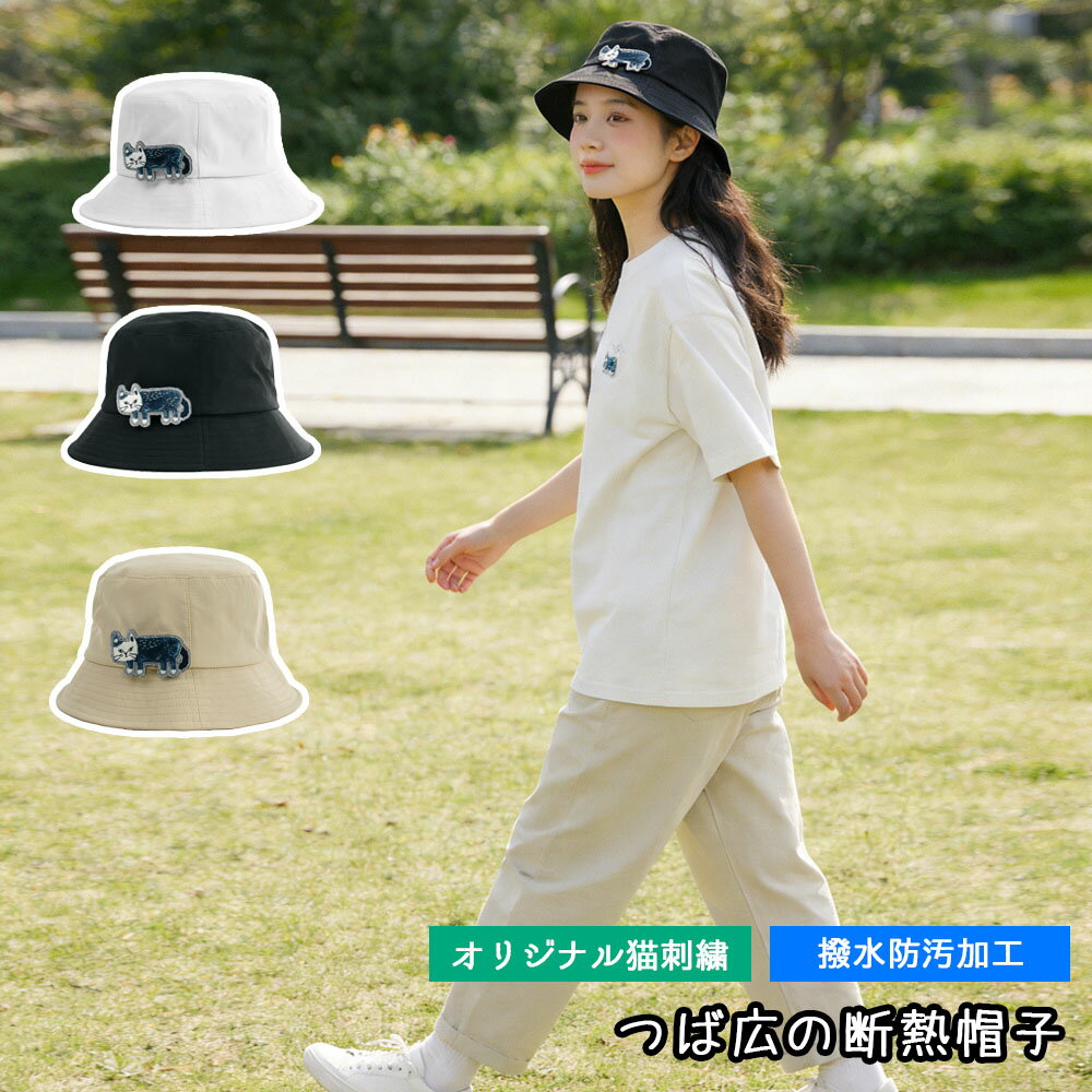 [短納期]帽子 ぼうし 日除け帽子 広つば ワイドブリム 猫刺繍 ねこ柄 小顔効...