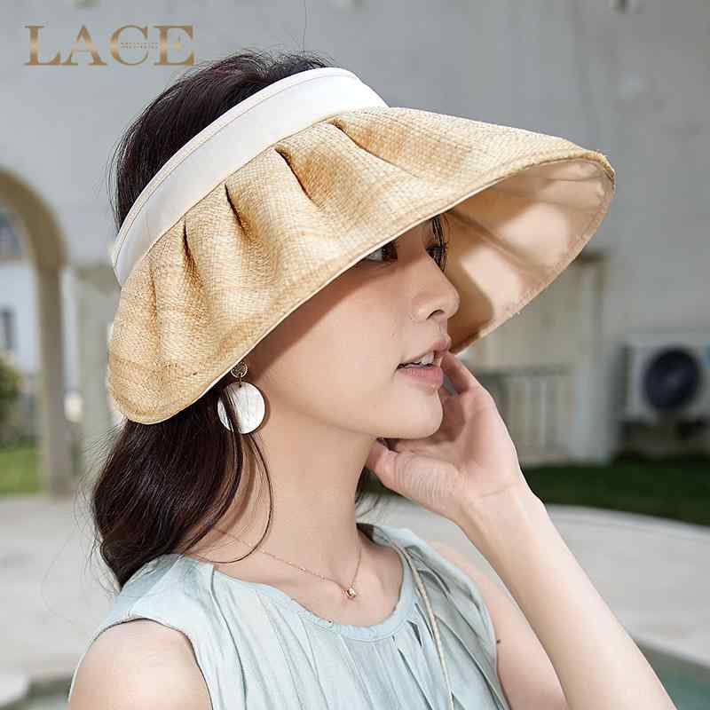 ・カテゴリ: キャップ・デザイン要素: テクスチャ・帽子の形: サンバイザー・つばの形: ワイドブリム・カラー展開: ベージュ、ブラック、カーキ、ピンク・機能: UVカット、通気性、遮光・主な素材: ポリエステル 51~60%・スタイル: カジュアル、多用途・加工: パッチワーク、布工芸