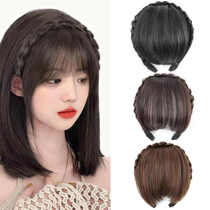 前髪ウィッグ レディース カチューシャ 三つ編み 一体型 白髪隠し 若見え ナ...
