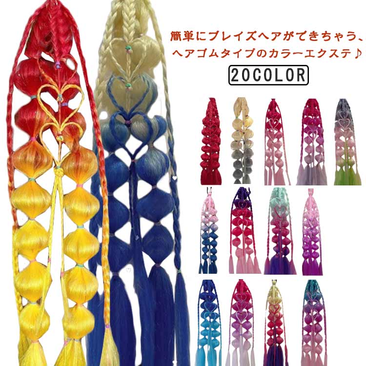 簡単にブレイズヘアができちゃう、ヘアゴムタイプのカラーエクステ♪根本は通常のヘアゴムなので、ポニーテールやツインテールにそのまま付ける事もできます!!フェスやダンスなどのイベントで映えるヘアスタイルにしたい時はもちろん、普段のヘアスタイルにさりげなく取り入れても◎程よいサイズ感と可愛いデザインが、...