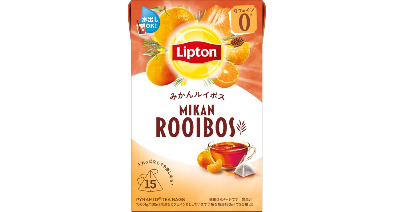 商品情報商品の説明商品紹介 【リプトン みかんルイボス ティーバッグ 15袋】 ◆みかんの果実感たっぷりの甘い香りとやさしい味わいが楽しめる、クセがなく飲みやすいルイボスティーです。 ◆水出しも出来るようになり楽しみ方が更に広がりました。 ◆ティーバッグ入れっぱでも渋くなりにくくておいしい。 ◆カフェインゼロ...