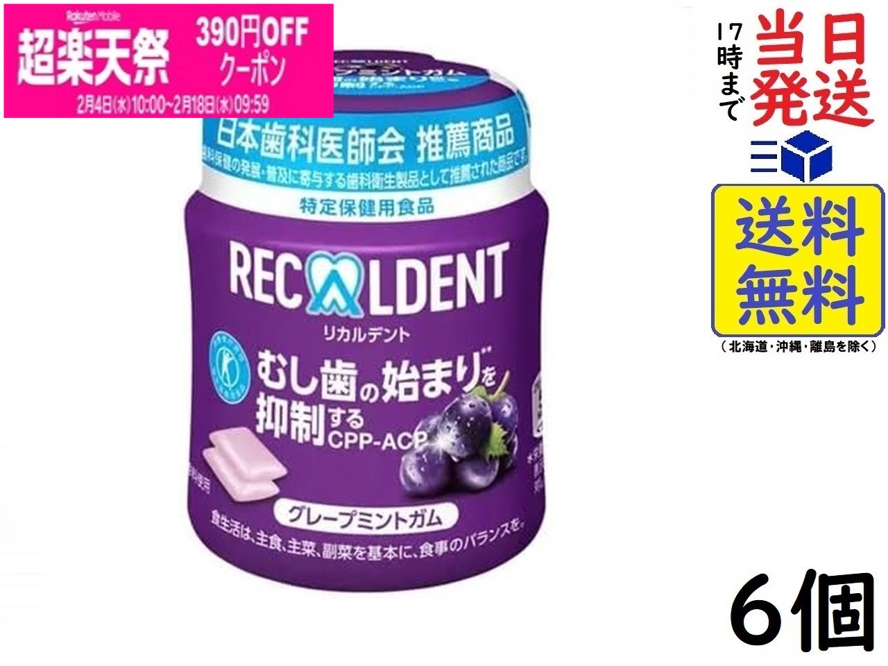 モンデリーズ リカルデント さっぱりミントガム(粒)ボトルR 135.2g ×6個賞味期限2027/02 【送料無料】【当日発送】 リカルデント さっぱりミントガム(粒)ボトルR 135.2gリカルデントは牛乳由来成分CPP-ACPを配合した「むし歯のはじまりを抑える」特定保健用食品のガムです。むし歯のはじまり(脱灰)を抑制し、溶け...