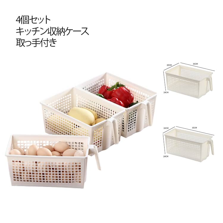 4個セット キッチン収納ケース ストックハンドルバスケット 取っ手付き 収納...