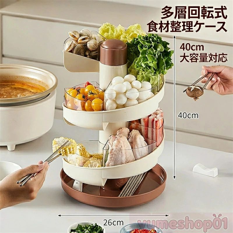 360°回転水切り配菜ラック クリームホワイト【2026新発売】キッチン便利グッズ 多層式収納 ホットポット必携商品特徴? 360°自由回転:各層独立回転設計,食材取り出しが手元に届き,立ち上がる必要なし!ホットポットタイムを快適に演出 ? 水切り機能付き:底部排水孔付き,洗浄後の野菜・海鮮を直接置いて水切り可能,...