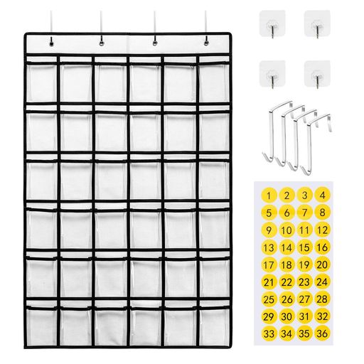ジュエリー 【サイズ】ポケット数:縦6列x横6列=36ポケット、サイズ:幅96cmx高さ67cm。1ポケットの大きさ:幅11.5cmx高さ16.5cm(マチあり)。 【素材】100g厚い不織布で作られました、ポケットは透明PVC製です、アルミハトメ。高品質のフックが付かれており、耐久性、大容量と綺麗な見た目が注目されています。軽量で折り畳...