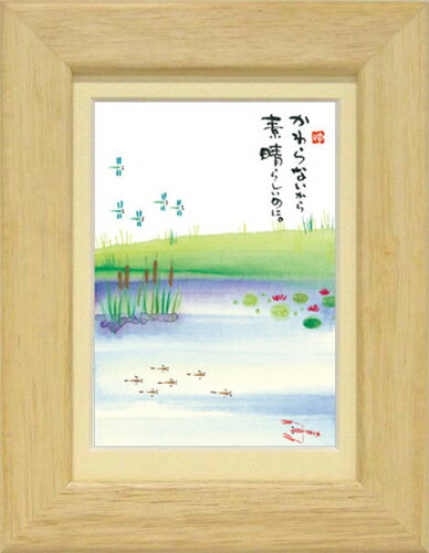 癒しの書家【御木幽石】のミニアートです。 やわらかく可愛らしい絵柄と心温まるメッセージが描かれています。 こちらは人気定番商品《ポストカード額装》 人気の絵葉書をマット付きフレームで額装しました。 専用箱入りでプレゼントにもぴったりです。 ■サイズ:約176×226mm ■仕様:卓上/壁掛け両用