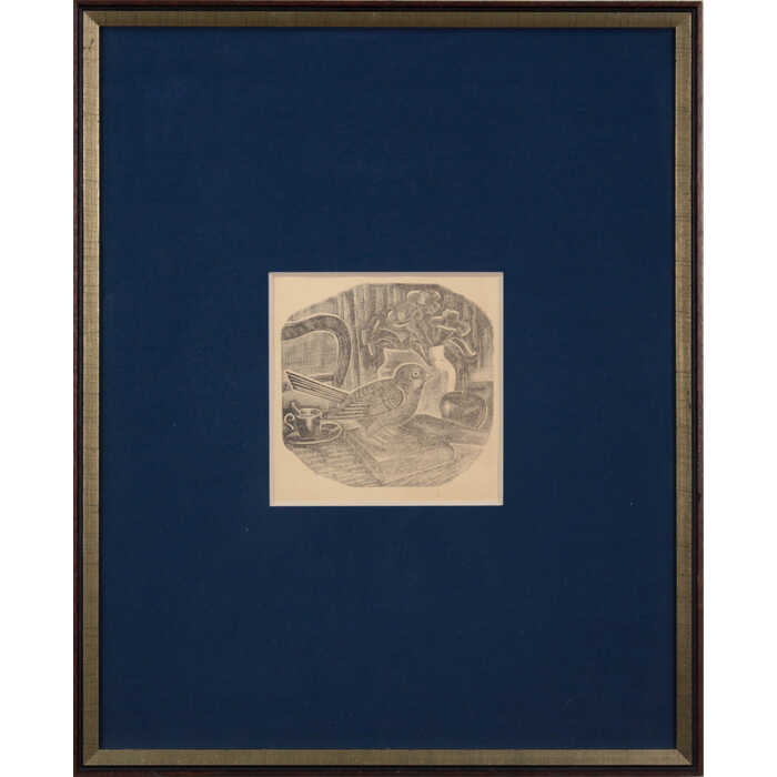 絵画 平塚運一 木版画 『机上小禽』 静物 鳥 美術品 アート ひらつかうんいち