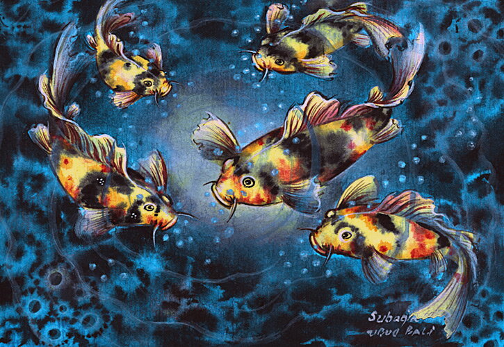 大きさ/25.5×20.3cm(絵のサイズ/16.7×11.5cm) バリ島の画家による紙にアクリル彩色の肉筆画。 規格サイズのマット紙に入れています。 額は画材店等で別途お買い求めください。
