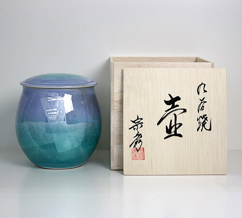 九谷焼銀彩 骨壷/骨壺(ブルー)5寸【家具調仏具・モダン仏具】【#2】