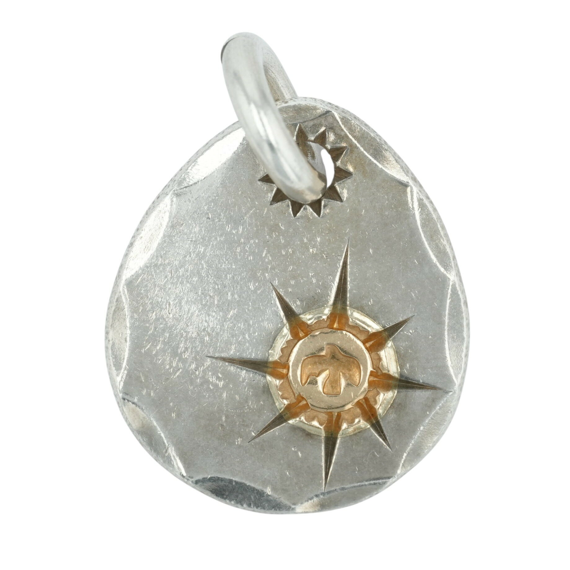 真鍮の台座がアンティーク感があるココペリのシルバーペンダントです。ネイティブ系のデザインの中でもチャーミングなココペリは大人気です。ガンガンに使い込むとこのデザインならでは「やれ感」が楽しめます。 縦:38mm 横:19mm 厚さ:2mm 重さ:7g(個体差あり) [シルバーアクセサリー/ペンダントトップ] 素材:スター...