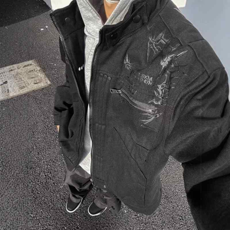 ジャケット メンズ ブラック デニム 春秋 ブルゾン アウター ショート丈 立襟 ワーク アメカジ 古着風 耐摩耗・商品カテゴリ: ジャケット・スタイル: 港風・対象年齢: 18-24歳・襟型: 翻領・フィット: ルーズ・前立て: ジッパー・フード: なし・・柄: 花柄・素材: デニム・主な素材: 綿56%・裏地: 綿56%・適用シーン: 日...