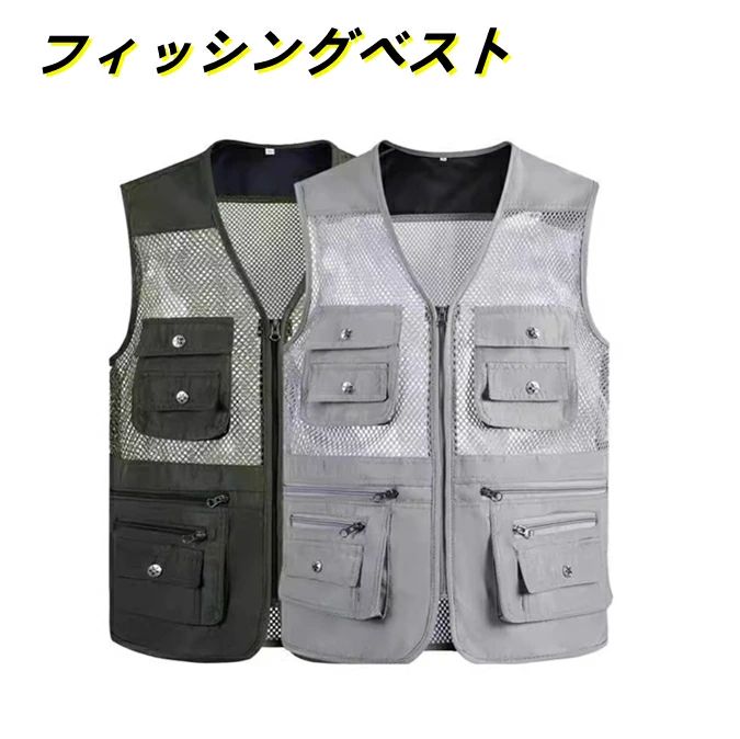 フィッシングベスト 通気性 メッシュベスト メンズ アウトドアベスト ポケッ...