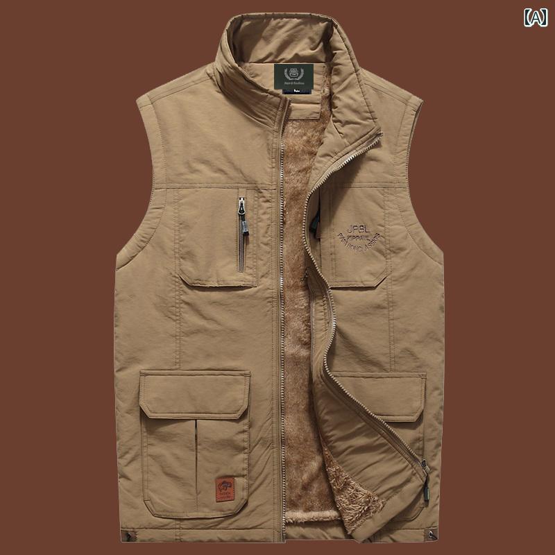 ベスト メンズ 秋冬 スタンドカラー 裏起毛 厚手 暖かい アウトドア カジュ...