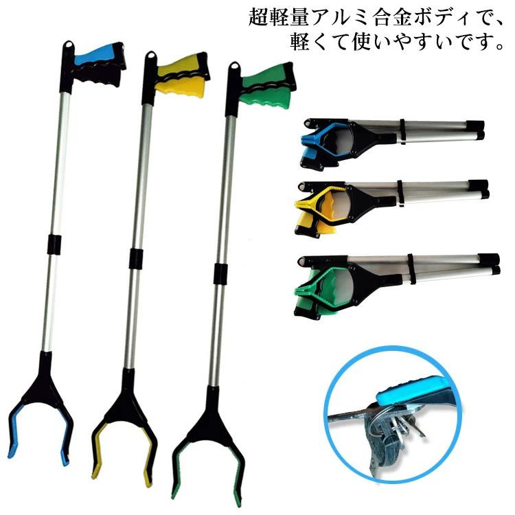 超軽量アルミ合金ボディで、軽くて使いやすいです。ハンドルは握る感触が手の感触に近く、少し力で掴めますので、持ちやすいを実現。先端に磁石がついており、カギなどの金属を簡単に拾えます。腰が曲がらない、肩から腕が上がらない方に。関節や膝や腰が曲がらずにものを取ることができ、お年寄りの方にも便利に使える...