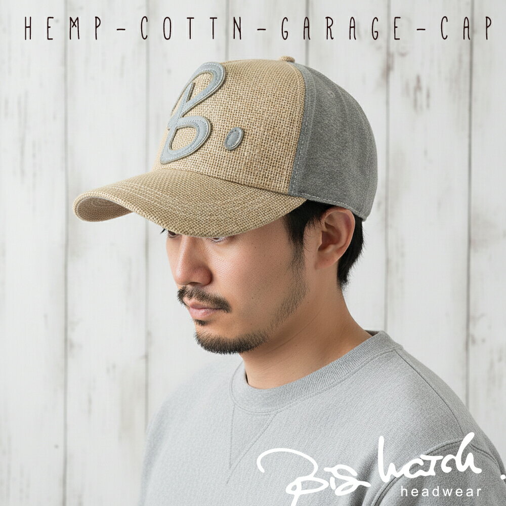 大きいサイズ メンズ 帽子 ヘンプコットン ワッペンキャップ BIGWATCH ベー...