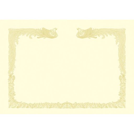 サイズ:310x436mm 10枚入り クリーム色の賞状です。重厚感があり本格的な金色の鳳凰枠入りです。 金粉が付きにくい特殊加工を施しています。 JIS規格より大きいワイドサイズです。寸法をご確認の上でご購入ください オフセット印刷、手書き用。厚みがある為、家庭用プリンターではご使用いただけません。